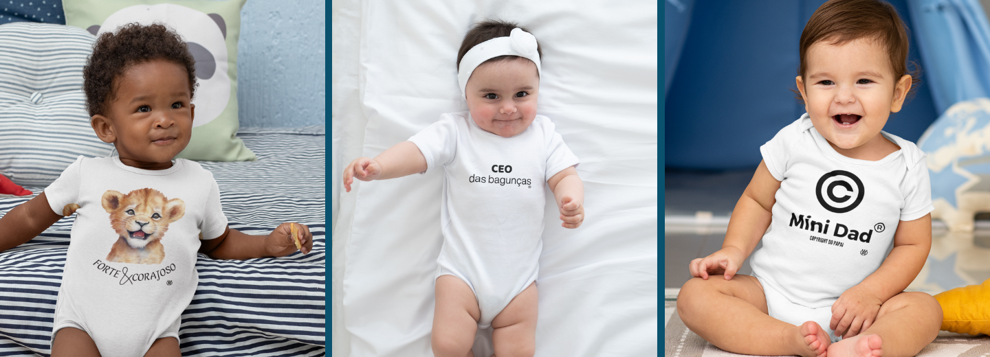 Vestindo a camisa desde cedo! Body divertidos e inspirações, 100% algodão para proteger a pele do seu bem mais precioso.